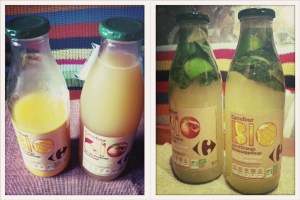 Astfel ca sticlele aratoase pe care le mai gasesc, precum cele de mai jos de la Carrefour, se transforma in recipiente pentru limonada. Cu 2 sticle din astea pe zi, nivelul optim de hidratare este deja asigurat. :) Iar cu aceasta ocazie, dintr-un suc bio am ajuns la ceva si mai bio. Sunt mandra de mine.