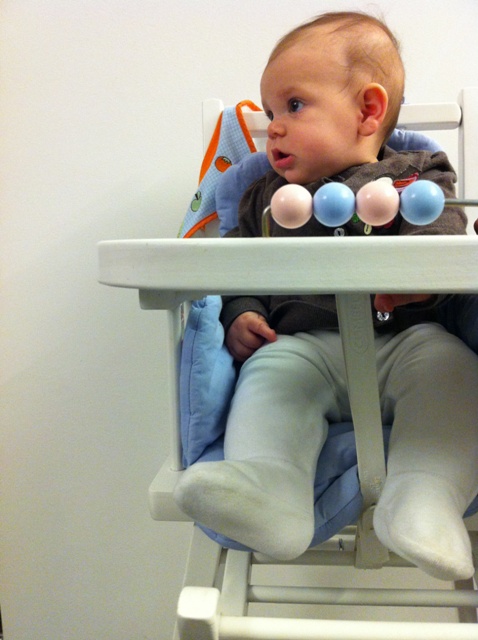 – azi am primit un scaun alb de masă, cadou pentru Zoe. Cadou de la unchiul ei. Nu am încă scaunul în posesie, dar el există și va fi al ei. Stă bine în el, că l-am testat (i-am făcut poze în el, de s-o fi săturat). Se ține bine în fundul bombat. :) Sper să și mănânce bine în el și să descopere cu drag cele mai gustoase și mai sănătoase alimente din poziția verticală, cu picioarele îndoite și gură deschisă. Despre haine, mâini și bavetici nu știu ce să zic. Vedem după cât de messy și fussy și funny o să fie.