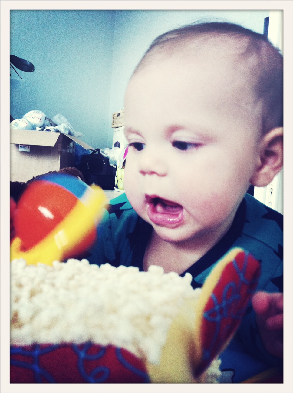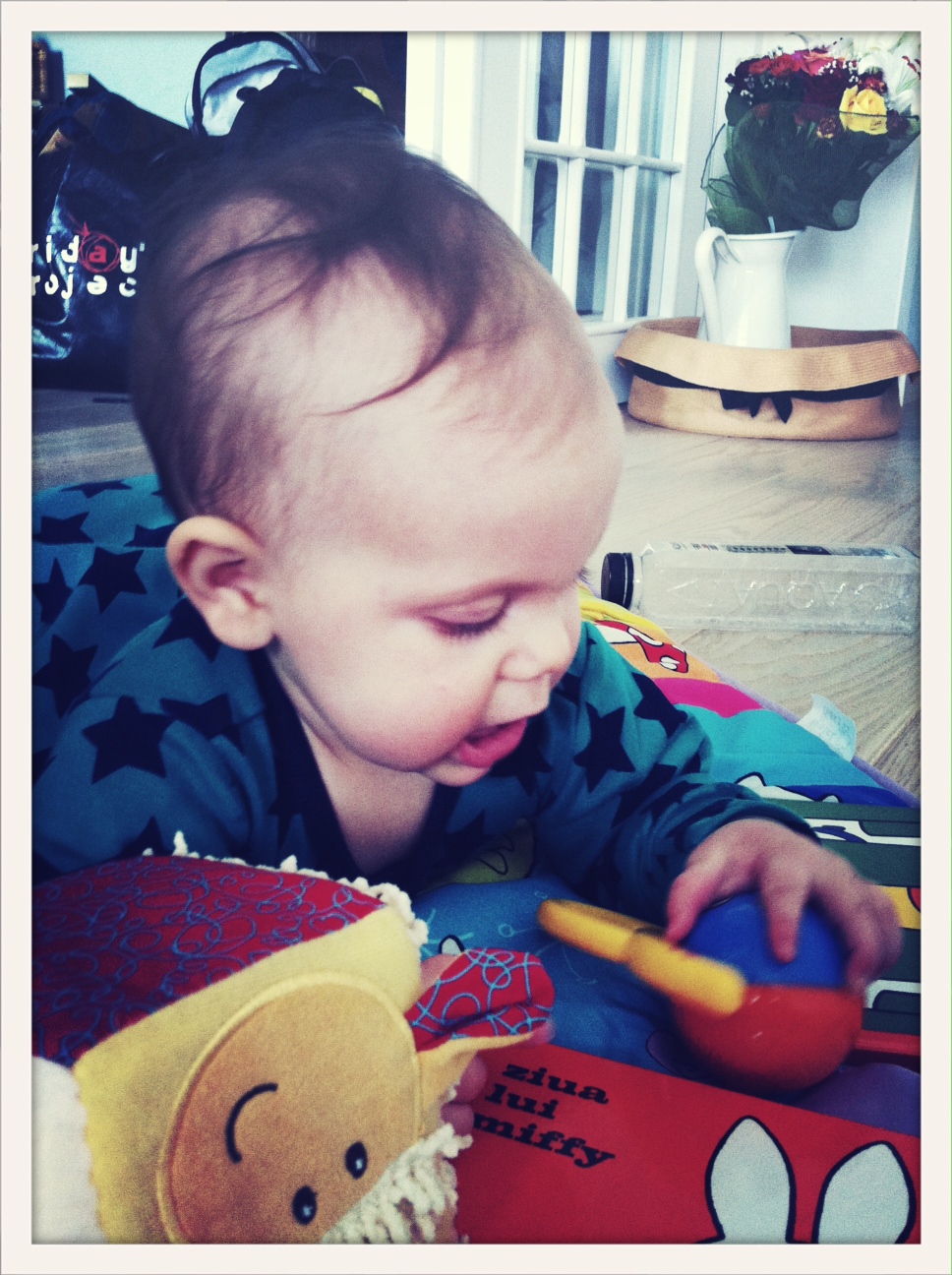 Lucrurile acestea se întâmplă cel mai mult și mai mult seara, înainte de culcare. Stă cu capul pe mine, se trage de păr, se lovește de pieptul meu, mă trage și pe mine de păr, de mâini, de halat. Și vorbește și chițăie. Adormirea asta durează și o oră. Uneori adoarme mâncând. Alteori se aude așa: