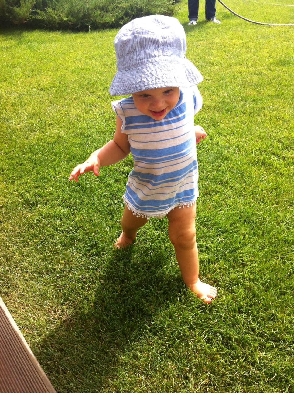Nu imi vine sa cred ca merge dintr-odata. Asta inseamna ca nu mai este bebelus? Ca e o domnisoara mica? Oricum ar fi, este inca un pui de om. Un pui mic care merge cate doua ore in continuu si apoi vine la picioarele mele. Si striga ma-ma mai clar ca niciodata.
