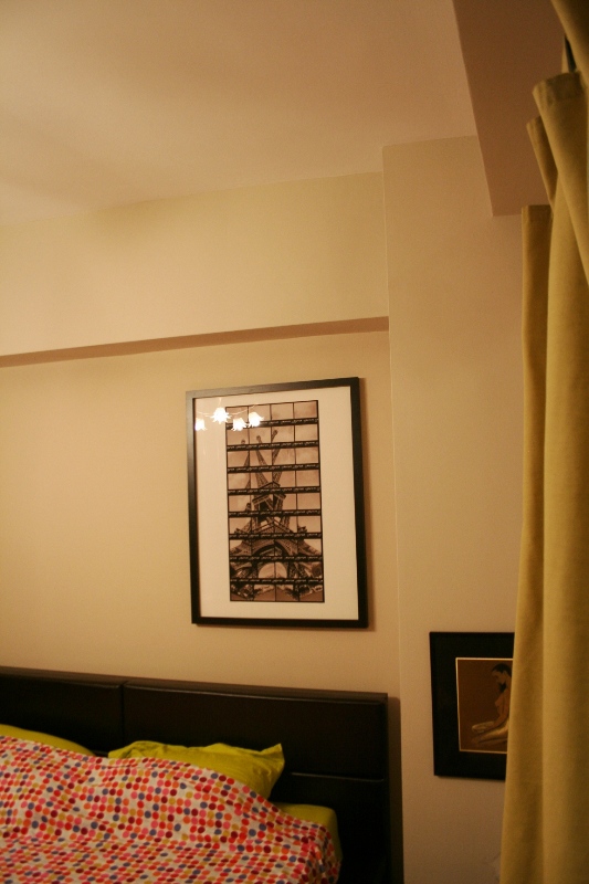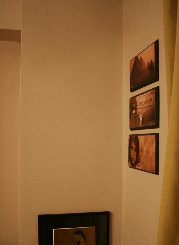 1 dormitor cu pat mare-mare, de 1,80 cm aşa şi cu tablouri primite şi cumpărate de prin multe colţuri de lume