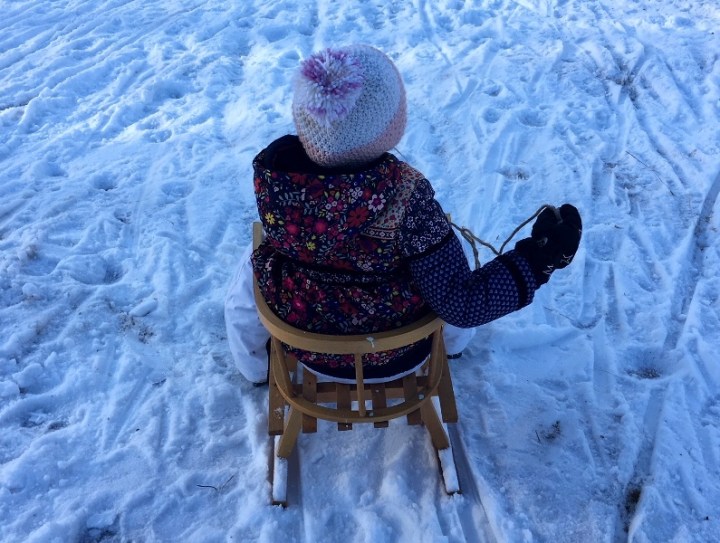 Eu am zis să ducem copiii o zi la zăpadă, nu trei, nu șapte, o zi, fără cazare, fără mâncare (poate doar la pachet), doar derdeluș să avem în fața ochilor. Și a picioarelor. El a verificat AccuWeather, această aplicație indispensabilă ieșirilor spontane, a confirmat ieșirea și atunci am ieșit. Fetele s-au uitat la Totoro, pentru a 5-a, a 6-a oară, nu mai știu, au mâncat, aproape s-au săturat, le-am luat paste la pachet, bun, perfect. Pe drum au adormit când și cum au putut, am ascultat povești, muzică mai încet, muzică mai tare, „că nu se aude aici în spate”, ba Les Elephants Bizarres, ba Macklemore, eu am citit din Juniper, el a condus, totul a mers că uns. Am ales să mergem în Cheia, știam noi un derdeluș, o vale în spatele unei pensiuni. Am aflat însă că derdelușul nu mai e accesibil, ne-am uitat pe drum în stânga, pe drum în dreapta, ba era un gard, ba nu era destulă zapadă, apoi el a propus Muntele Roșu, acolo ne-am dus. Am urcat cu mașina (se poate urca, lejer, pe două picioare și poate chiar pe două bețe), mai erau încă vreo zece mașini, am luat copiii și ne-am dus la săniuș. Zoe și-a urcat singură sania o dată, de două ori, de vreo douăzeci de ori și s-a tot dat, nu până când a înghețat, dar până când i-am propus noi să o luăm pe drum în jos, să ne plimbăm, să le lăsăm să alunece singure, acolo unde era loc de alunecat. Milla a avut un start mai greu, dormise mai puțin, a plâns, a stat în brațe, până când s-a calmat și a urcat și ea pe sanie. S-au așezat, una în față, una în spate și s-au tot dat, au și picat, până când au prins ceva mai multă viteză și au picat, mai serios, cu capul în zăpadă și cu sania peste ele. Atunci Milla, vehement și hotărât, a refuzat să se mai dea pe sanie. După aceste momente petrecute în patru, ne-am separat, eu cu domnișoara mică pe jos, el cu domnișoara mare pe sanie și ne-am întors agale, înapoi în parcare. Drumul a fost plăcut, Milla a vorbit mult, m-a întrebat de călătorii, de zăpadă, de lupul din pădure, m-a întrebat ce facem dacă se întâmplă acum un cutremur și cade un copac pe noi. Jumătate de oră am vorbit despre noi și despre viața din jurul nostru. Ea m-a ținut mereu de mână și eu am mers la pas cu pasul ei. Cerul avea culoarea apei din Grecia, zăpada strălucea cu ajutorul razelor soarelui. Era perfect, eram îmbrăcate potrivit, ce mă bucur că am mai trăit o zi așa frumoasă.