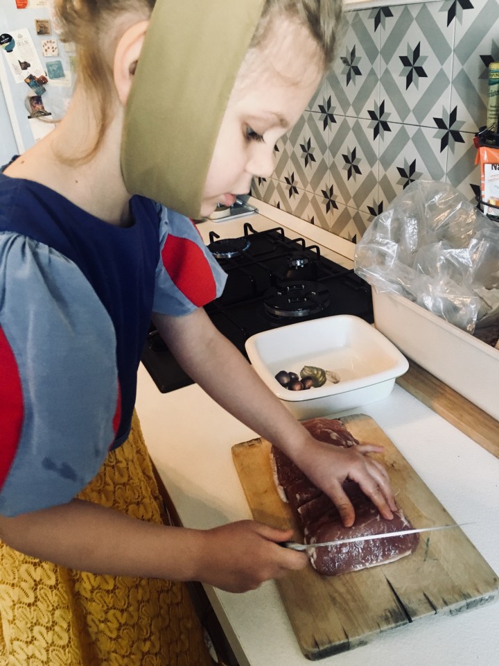 Albă ca Zăpada cu cartofi la gât și cu cuțitul în mână