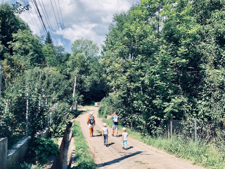 E bine că am ajuns în această plimbare (e bine si ca nu am avut nicio nevoie de a merge la toaletă). Fie ea scurtă, de doar două ore. Se poate să nu ajungă întotdeauna, la copii, iubirea de munte sau iubirea de a vizita din în ce mai des muntele sau de a sta cu orele-n șir în natură, poate că și iubirea se mai împiedică, se mai urzică, dar eu cred că ceva tot se transmite. Mă gândesc la mine, am făcut multe drumeții în familie, uneori mă enervam, nu înțelegeam, de ce picioarele nu sunt făcute mai mult să se odihnească, decât să urce sau se cațere. De ce mainile sunt făcute să care schiurile. Realizez că frecvența nu e ceea ce mi-a rămas în suflet, ci plăcerea, ba chiar iubirea, respectul. Plăcerea de a urca, de câteva ori pe an, nu multe, oriunde într-un spațiu pe care unii îl numesc creierii pădurilor sau ai munților, dar cine știe ce este el de fapt, mai ales că, de obicei, e mult mai aproape de cer. Iar cu doi copii, de 4 și respectiv 6 ani, e bine să încerci să ajungi în aceste locuri, pentru că deși, uneori, observi indiferență la anumite activități sau drag de stat în casă, îți dai seama cât de firesc le stă lor, acolo, afară, mai sus sau mai jos în deal. Cât de mult sunt ei ai lumii care ne înconjoară.