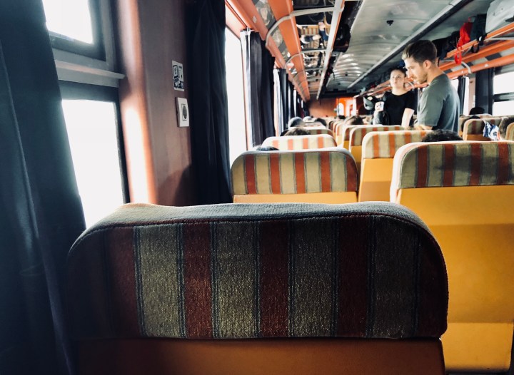 Iar în tren este mereu rost și loc și timp de povești. Poate și acesta a fost un motiv. Scaunele sunt colorate, nu atât de intens și de divers precum în trenurile fotografiate de Bulboacă, dar arată bine, deși sunt cam prăfuite. Iar oamenii deschiși și dezinhibați la vorbă.