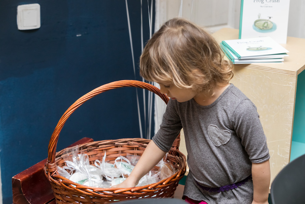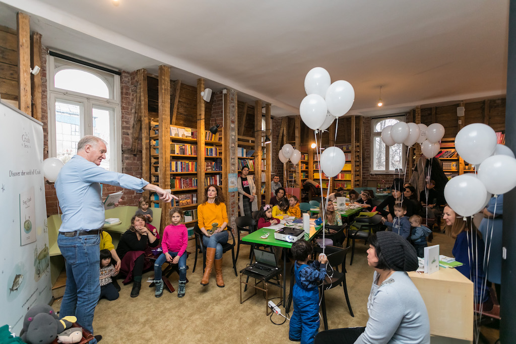 Eu am fost cu fetele la lansare, l-am ascultat vorbind, citind cartea, l-am așteptat să ne dea un autograf. Fetele au făcut un puzzle, au urmărit povestea, eu le-am tradus-o, au mâncat o turtă dulce, s-au jucat cu un balon, a fost plăcut, o lansare cu multe detalii frumoase (pe care eu le ador, bineînțeles) la care aș mai fi stat dacă era mai mult spațiu și apă. Și mai important, flagrant, precipitant, este că acasă mă aștepta un copil la alăptat. Garantat. Ia uite ce-am inventat.
