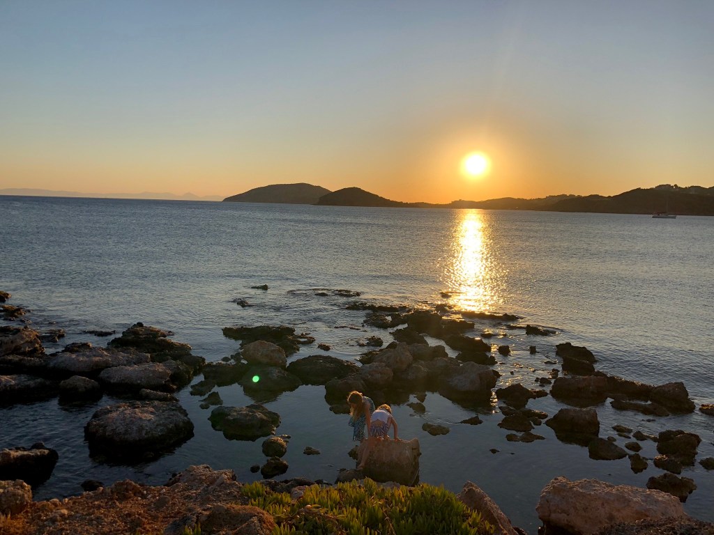 A fost o vacanță cu răsărituri, zi de zi câte un răsărit, Doamne-ajută pentru asta, dar mai mult cu apusuri. Am văzut 7 apusuri, ne-am luat la revedere de la soare, de la zi, de la toate, odată cu fiecare apus, cu voce tare sau în gând și ce bine a fost. Uneori apunea veselia sau răbdarea, dar de cele mai multe ori apunea doar soarele. Apunea soarele peste jucăriile noastre de plajă curățate de nisip, peste costumele de baie sărate și ude, peste veselie și țipete, peste mare, peste tot. A fost vacanța celor 7 apusuri, în care, în fiecare zi, am reușit, fără să ne propunem (sau le fotogriem pe toate), să vedem fiecare apus în toate plenitudinea și măreția lui. Apusul plin, pe tot cerul, pe toată întinderea lui, cam cât vedeam noi cu ochii. Un apus de sus, de la Templul Poseidon, din cel mai sudic punct al peninsulei Attica, două apusuri pe plajă, două la terasă, două din balconul hotelului. Apus peste apus peste apus. A fost vacanța costumelor de baie, inspirat și atent selecționate de la Cajuki. A fost vacanța saganaki, această brânză prăjită și divină. A fost vacanța în care cel mai mic copil a mâncat mult tzatziki, cel mai mare a mâncat multă brânză feta, iar cel mijlociu, multe roșii. Pe lângă carne și înghețată. Noi am dus-o bine, ca întotdeauna în Grecia, cu calamari și caracatiță. A fost vacanța unei rutini simple, circulare, sănătoase – mic dejun, piscină, cameră, fructe, sandviș, plajă, restaurant, apus, somn. Ceea ce a făcut ca mersul lucrurilor să fie ceva mai relaxant (cam 10% în plus :)), dar în același timp să simțim că a trecut prea rapid. Zoe a mai avut o misiune legată de un caiet de matematică, eu o misiune legată de Cola Light, iar Radu una legată de somn. Milla a avut și ea o rutină, cam din a doua zi, când după fiecare duș, stătea dezbrăcată pe un prosop, pe jos, în balcon, să privească în zare, să mănânce popcorn. Nu, glumesc, nu popcorn, ci fructe sau sandvișul cu șuncă și unt de la mic dejun. Kira cea mică avea și ea un obicei, să stea cu gura și nasu-n țâță și asta era nevoia ei de bază, vrei, nu vrei. A fost vacanța cu nemulțumiri și cerințe multe, ca în orice altă zi, de fapt, fără vacanță. Chiar mă gândeam la asta, fetele noastre nu par să facă diferența între casă-vacanță-bunici. Se bucură de toate, intens, complet, dar se enervează în oricare dintre aceste locuri, la fel de intens, complet, fără jenă. Exceptând grădinița, școala și uneori anumite vizite, când probabil mintea sau corpul le zice să se abțină, ele sunt așa cum le-a făcut Dumnezeu și implicit cum le-am crescut noi. E și bine și rău. Sau mai degrabă, e normal. Mă bucur că se reactionează nastural în orice astfel de situație, deși, din punctul meu de vedere de mamă care conștientizează curgerea acestui timp, tare mi-ar plăcea să fie mai rapidă masa, mai rapidă schimbarea de costume, mai rapid dușul, mai rapidă trecerea în lumea viselor. Oare ce-am face cu timpul ăsta economisit? L-am consuma, negreșit. A fost vacanța teatrului în aer liber. Ce detaliu interesant gândit de hotelul Ever Eden și perfect amplasat lângă o altă poieniță, unde copiii s-au tot dat peste cap. A fost vacanța lui Acropole, din moment ce singura dată când am plecat spre Atena, am vizitat Acropole, o zi cam insuportabil de călduroasă pentru copii, fapt pentru care am cam tras de ei. Cu ocazia asta am descoperit că e bine să nu testez limitele când căldurile sunt prea mari, dar nici nu regret, pentru că Acropole este o zona superbă, liniștită, corect amenajată, cu bănci, cu coșuri de gunoi, cu vedere la oraș și la zei. Dacă aș locui în Atena, acolo mi-aș da întâlnire cu fetele, cu băieții, cu copiii, cu prietenii. Sus acolo, printre măslini, cu ochii în luminile orașului, în aer și oleacă de praf grecesc. A fost vacanța primului Aqua Park, adică niște tobogane pe care le-am descoperit pe mare, în zona plajei hotelului. Cel mai probabil pentru a compensa plaja mică. A fost vacanța scumpă, în care camera rezervată cu o zi înainte de plecare, a costat mai mult decât voiam, dar șederea în hotel a fost mai plăcută decât credeam. A fost vacanța noastră în cinci, a patra și sigur ultima în formula asta și pe anul acesta. A fost și va mai fi.