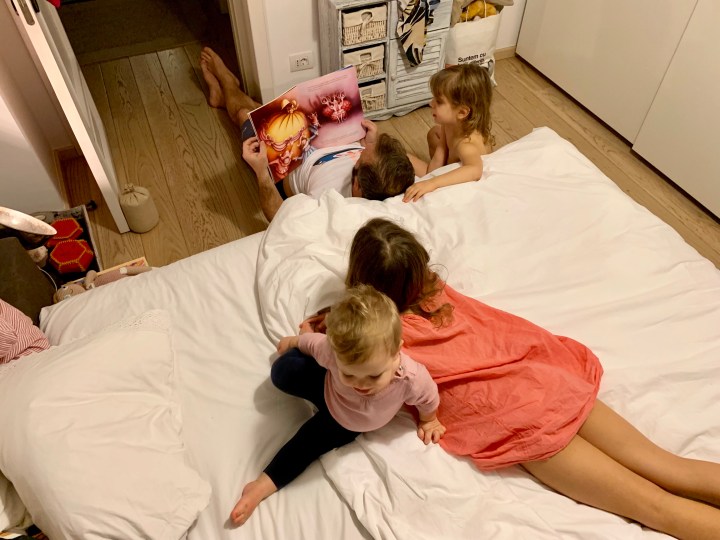 Acum trei-patru seri, la culcare, îmi povestește fata mare ce a făcut la școala. Ăla e momentul de povești. Iar de când am regândit dormitul împreună (am încercat eu cu soț și bebeluș, și fete mari separat, dar nu prea a mers că venea copil mijlociu peste noi, în fiecare noapte, în jur de 12-1, așa că dorm eu cu bebeluș și copil mare acum și copil mijlociu cu ta-su) aud des poveștile.