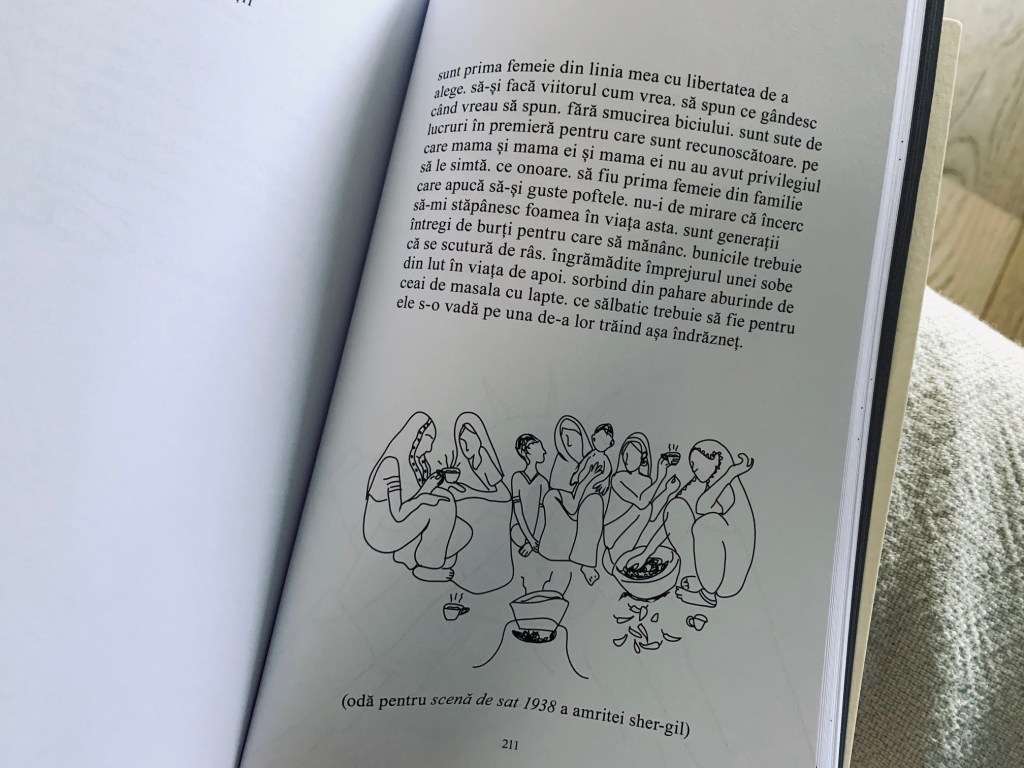 „(…) vreau să vorbesc cu versiunea adolescentă a mamei mele. s-o întreb despre visurile ei. să devin părul ei cârlionțat împletit. să devin voalul ei mângâindu-i sprâncenele (…)”