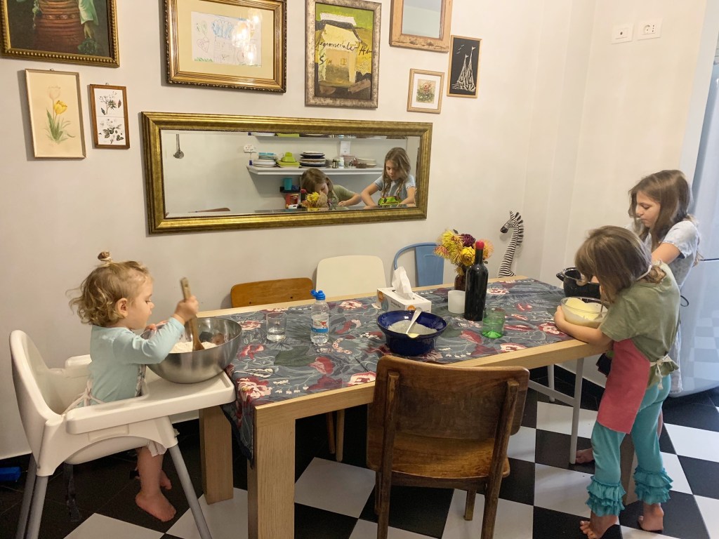 - Sâmbătă, 5 Decembrie – Facem biscuiți (scones bune de la Mazi, rețetă veche, din 2010) pentru vecini și Moș Nicolae. Pregătim ghetele, citim povestea Moșului Nicolae, ce zi aglomerată. Ne uităm, poate, la The Christmas Chronicles 1. Am făcut biscuiții, i-am împărțit prin vecini, ele au ales să vadă Grinch. Urmează ghetele, poveștile, dulciurile, clementinele, zici că n-am fi doar doi părinți.